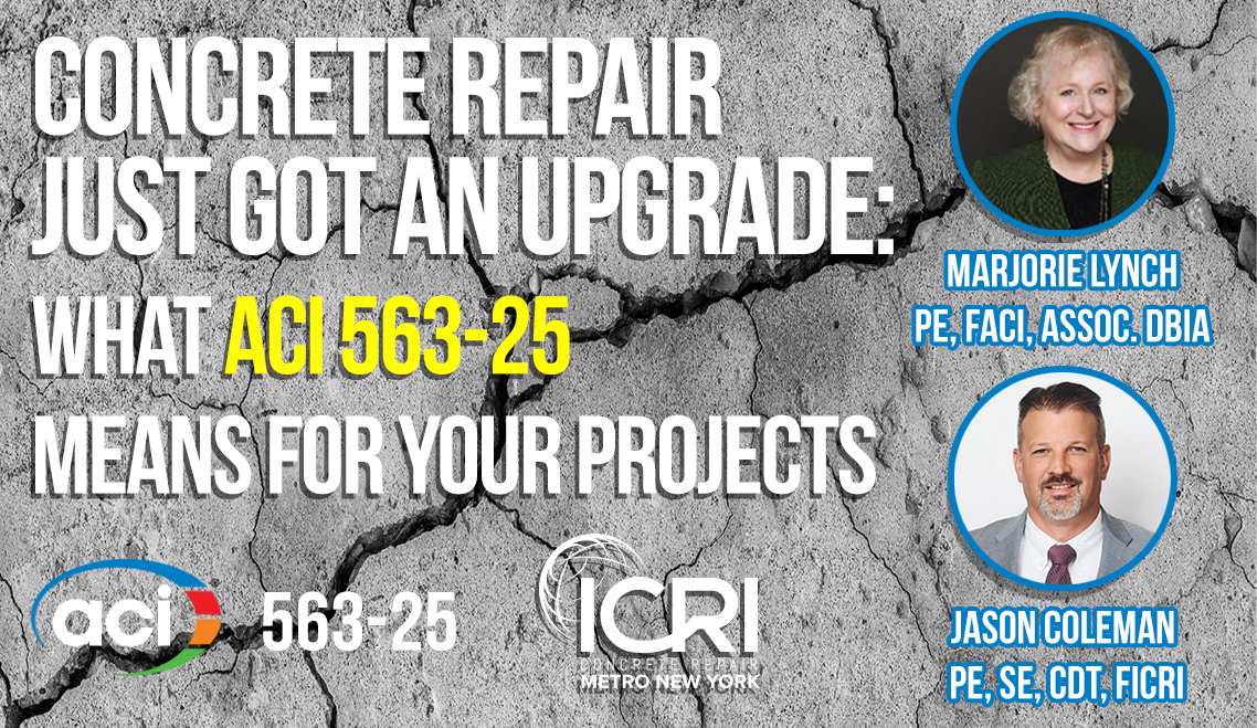 The International Concrete Repair Institute (ICRI) is an international association in the construction industry devoted to the repair and restoration of concrete and other structures. Here at the Metro New York Chapter, our local leadership supports the national mission by providing regional networking opportunities and educational seminars in the New York City metropolitan area.
